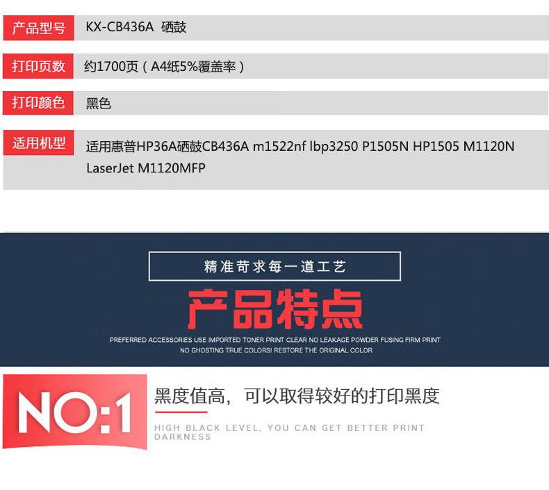 凱欣標準版 KX-CB436A粉盒 適用惠普HP36A硒鼓CB436A m1522nf墨盒佳能lbp3250 P1505N HP1505打印機M1120N LaserJet M1120 全國統(tǒng)一價:130元